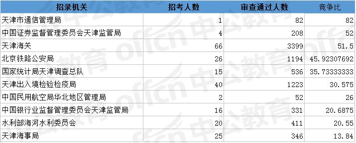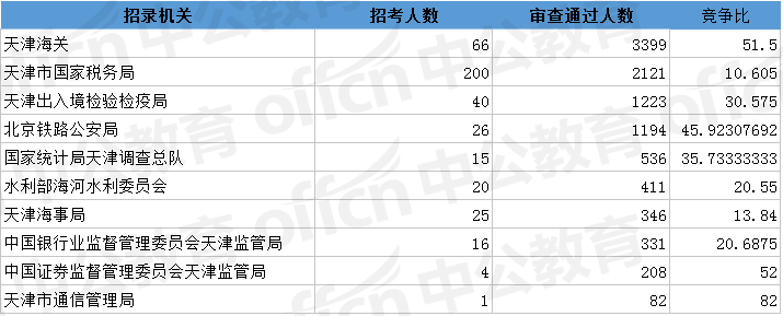 為幫助廣大考生更清晰的了解今日報名情況,中公網校整理了審核通過人數前十位的部門以及競爭比例最激烈的十大部門,供廣大考生參考: