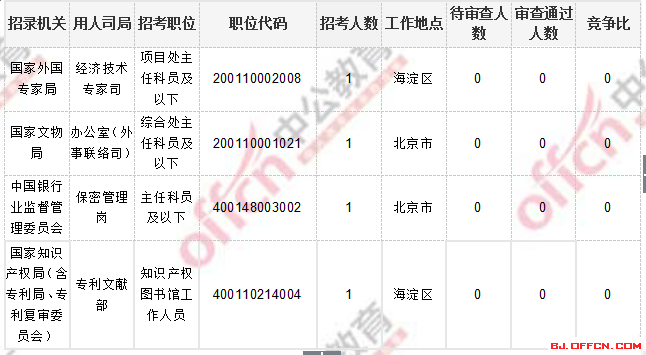 2018國考北京地區(qū)過審人數(shù)最多十大職位