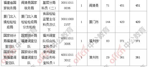 截止到7日9時,競爭比例的職位為福建省國家稅務局安溪縣國家稅務局基層分局科員300110311011一職,招錄1人,截止到7日9時通過人數為729人,競爭比例729:1!