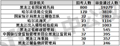 截止到11月7日16時(shí),通過審核人數(shù)前三位的部門依次是:黑龍江省國家稅務(wù)局、哈爾濱鐵路公安局、國家統(tǒng)計(jì)局黑龍江調(diào)查總隊(duì),三部門通過審核總?cè)藬?shù)達(dá)24892人,占通過審核總?cè)藬?shù)的85.28%。其中黑龍江省國稅局審核通過人數(shù),與去年同期相比增加了5595人。