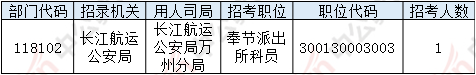 截止到7日16時,工作地點在重慶的職位僅余1個無人報考,為長江航運公安局萬州分局奉節派出所科員。中公網校專家分析,該職位的招考條件相對嚴格,是該崗位無人報考的原因之一。下面是無人報考職位一覽表: