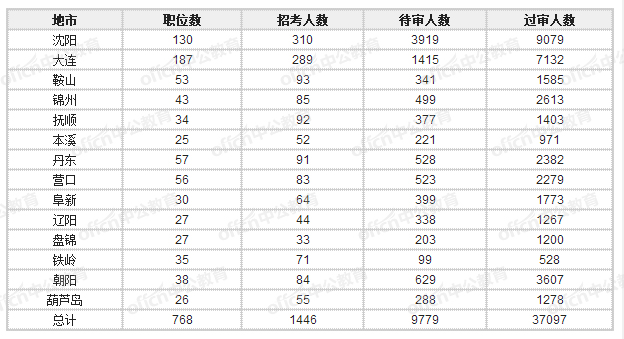 截至11月7日16時:2018國考報名涉遼崗位通過審核人數達37097人,待審查人數為9779,21職位無人報考