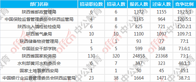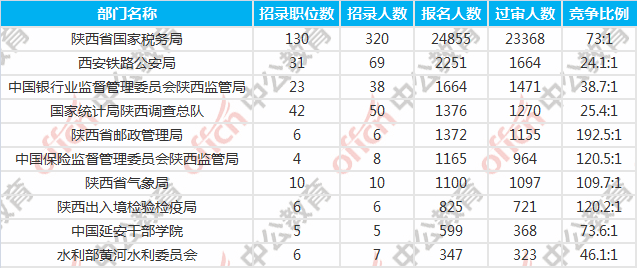截至到8日9時,通過審核人數前三位的部門依次是:陜西省國家稅務局、西安鐵路公安局、中國銀行業監督管理委員會陜西監管局,三部門通過審核總人數達26503人,占通過審核總人數的80.3%。