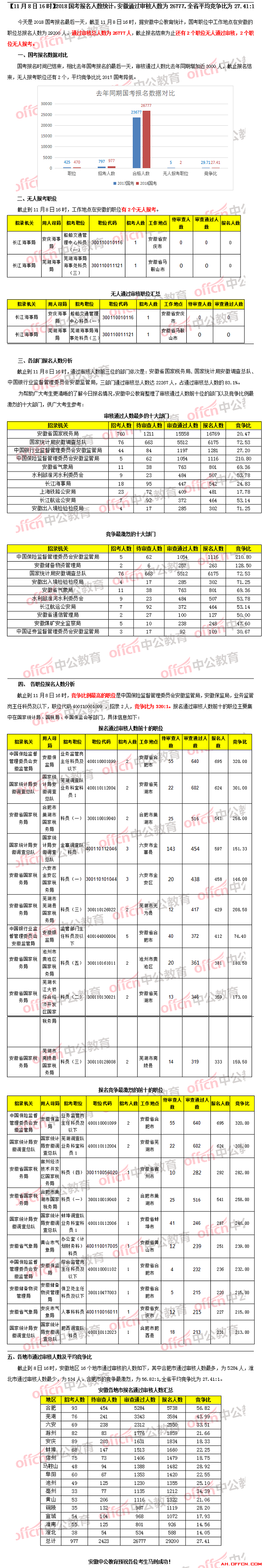 【11月8日16時(shí)】2018國(guó)考報(bào)名人數(shù)統(tǒng)計(jì):安徽通過(guò)審核人數(shù)為26777,全省平均競(jìng)爭(zhēng)比為27.41:1