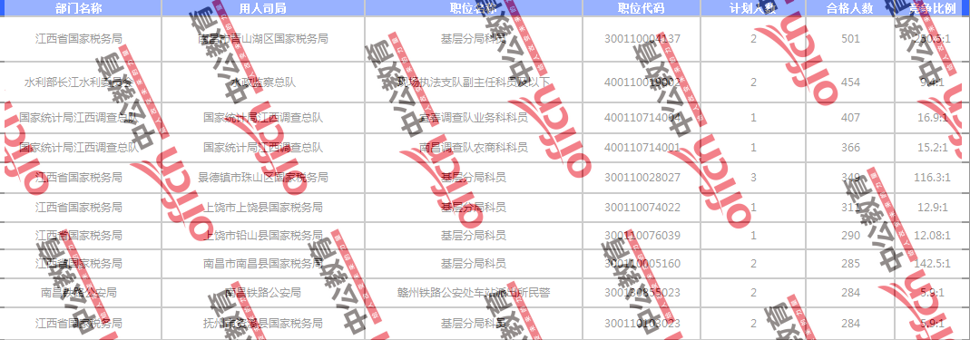 報名通過審核人數前十的職位主要集中在國家統計局江西調查總隊 水利部長江水利委員會 國家統計局江西調查總隊等部門,具體信息如下: