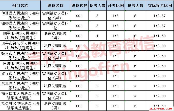 注:由于資格審查和繳費工作還未結束,本文數據僅供參考,具體以2018年3月18日15時前吉林省公務員考試網公布繳費確認未達到開考比例的職位為準。