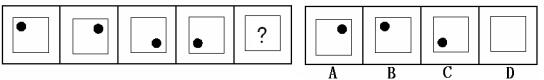 (答案:B。黑點在正方形中順時針移動。在第5個圖形中,應該正好移動到左上角。)