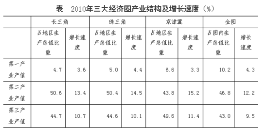 三大經濟圈中,2010年三次產業增長速度均超過全國平均水平的有幾個?