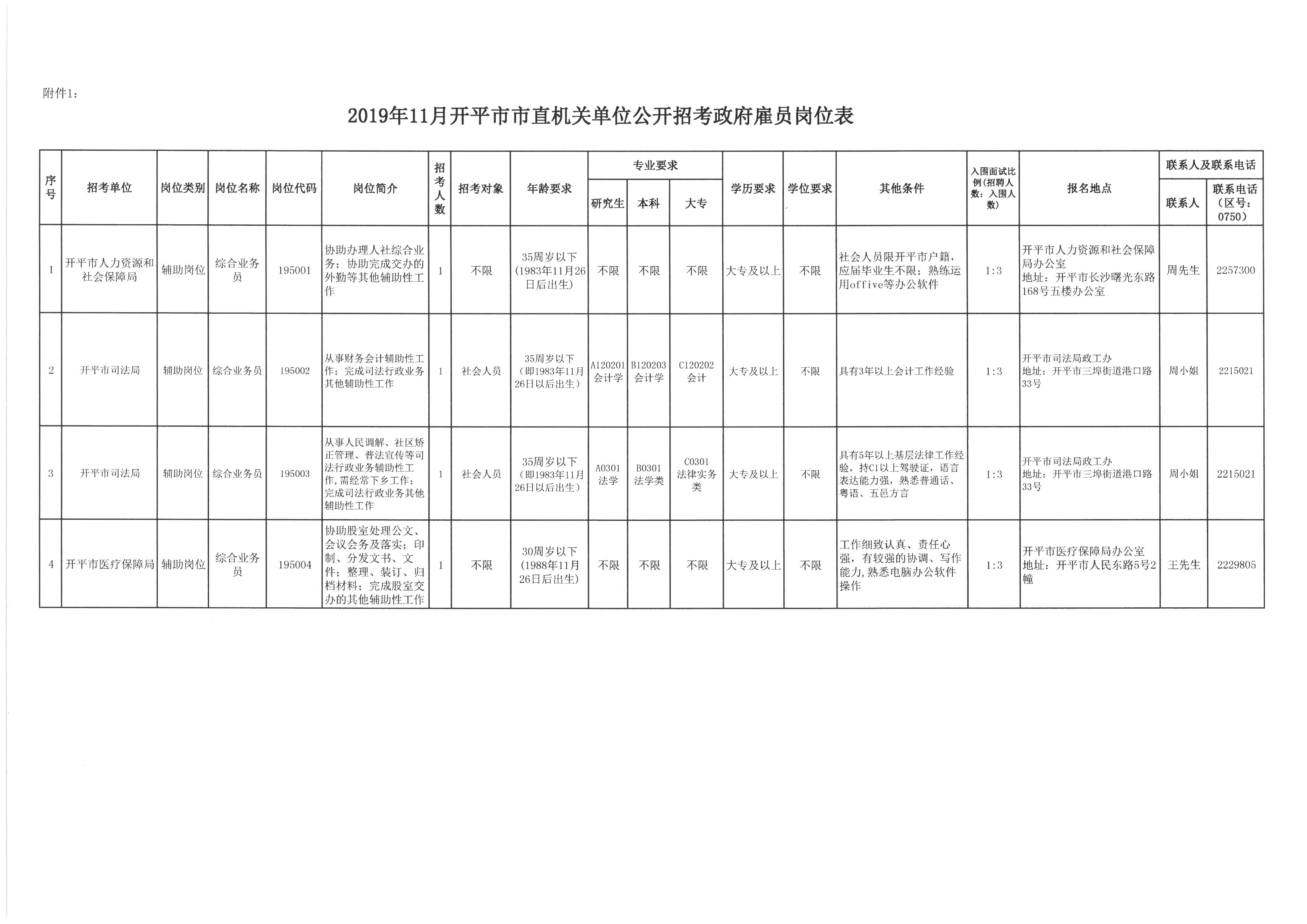 2019年十一月開(kāi)平市市直機(jī)關(guān)單位公開(kāi)招考政府雇員崗位表