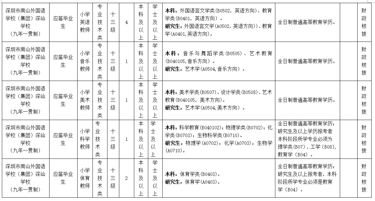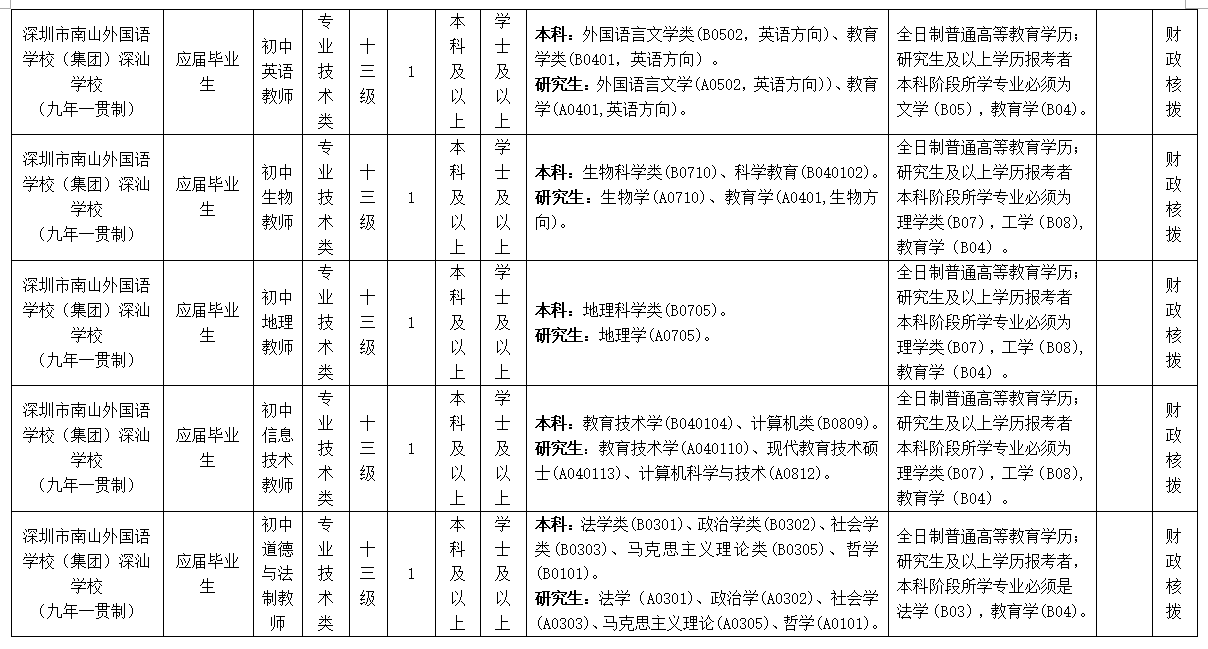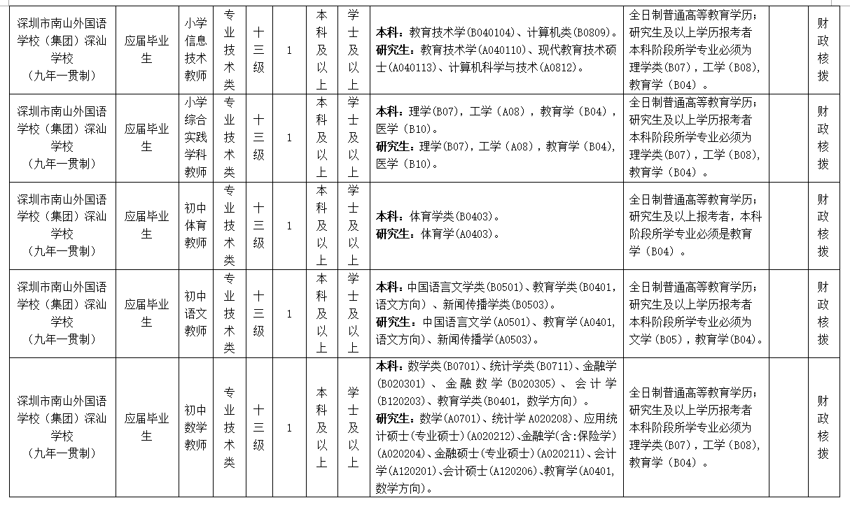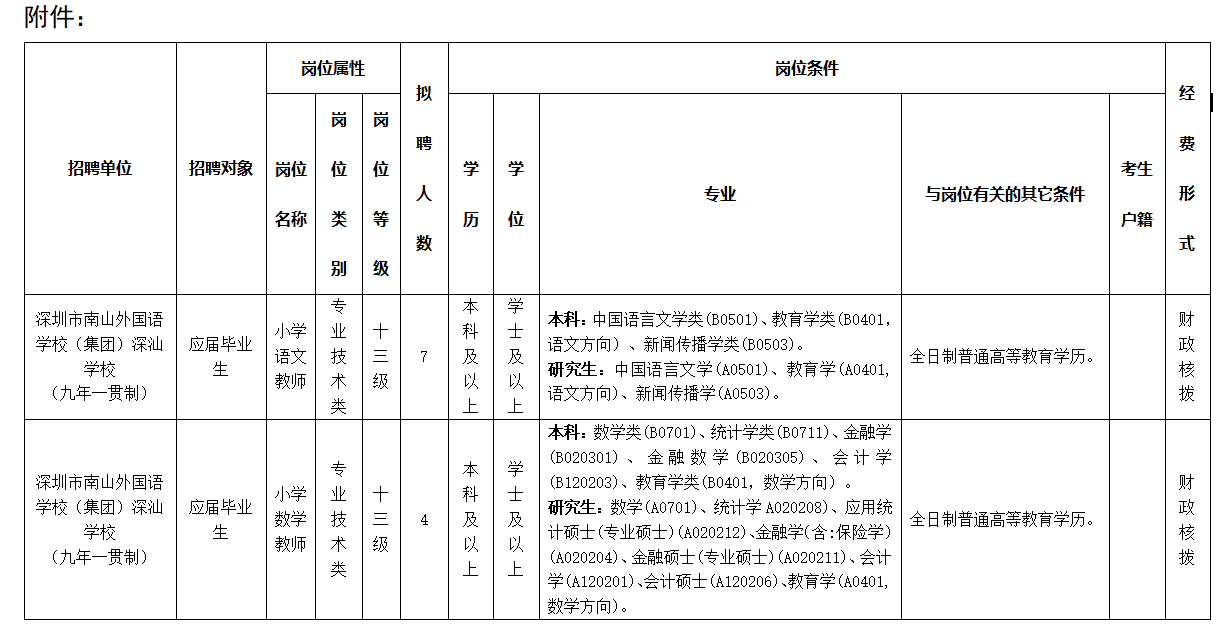 附件:1深圳市南山外國語學校深汕學校招聘應屆畢業生崗位表sz.xlsx
