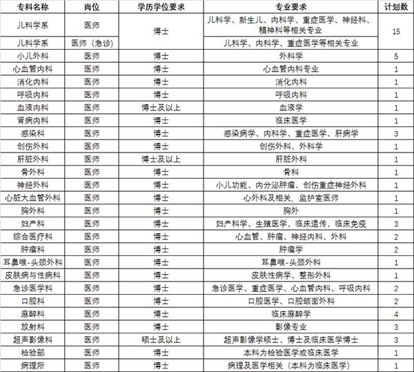 我院因工作需要,現(xiàn)公開(kāi)招聘2020年應(yīng)屆碩士、博士畢業(yè)生,具體崗位及要求如下:
