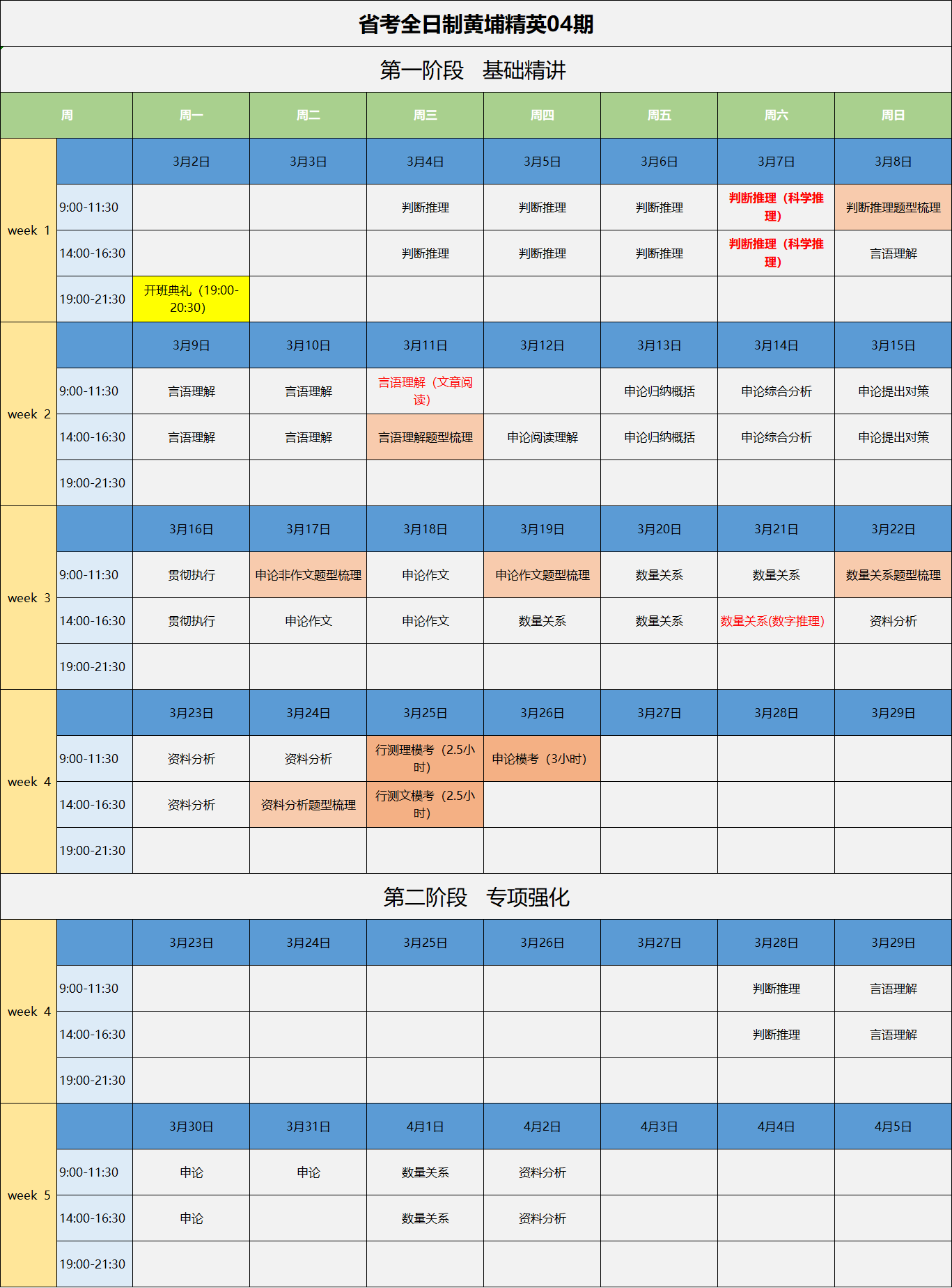 2020年省考黃埔全日制課表04期