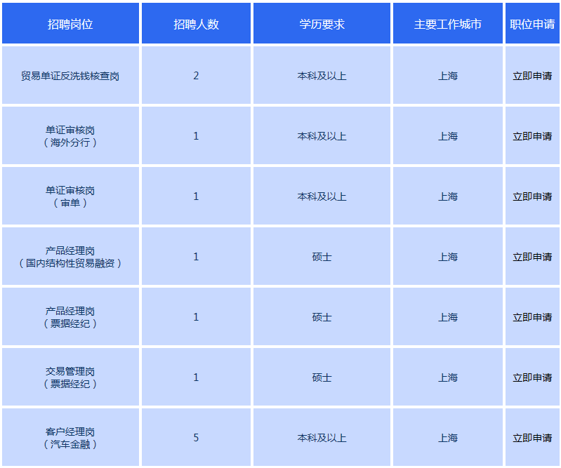 2020浦發銀行總行交易銀行部春季校園招聘公告(12人)