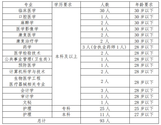 3、高學歷高職稱者年齡可適當放寬,優先錄用。醫療相關專業往屆畢業生須有執業證(除2019年畢業生)、規培證(2017年以前畢業生);醫技相關專業往屆畢業生須有資格證或成績單;護理專業往屆畢業生須有資格證;