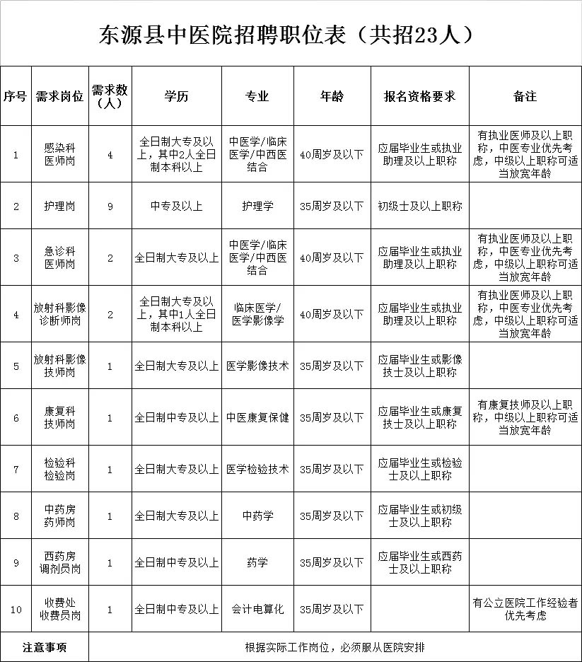 原標(biāo)題:東源縣中醫(yī)院招聘公告(招23人)