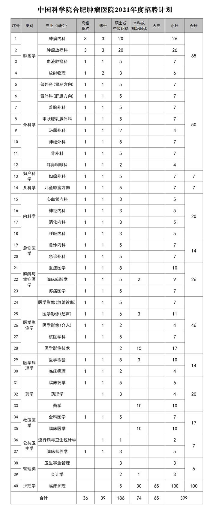 2021中國科學院合肥腫瘤醫(yī)院招聘399人公告