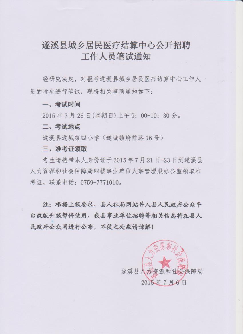 2015廣東遂溪縣城鄉居民醫療結算中心招聘筆試通知