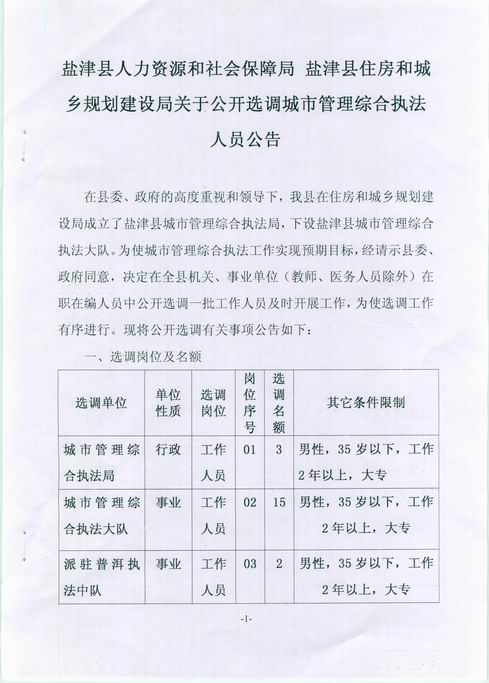 2015云南鹽津縣選調城市管理綜合執法人員公告【招28名】