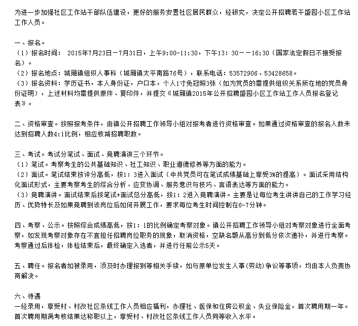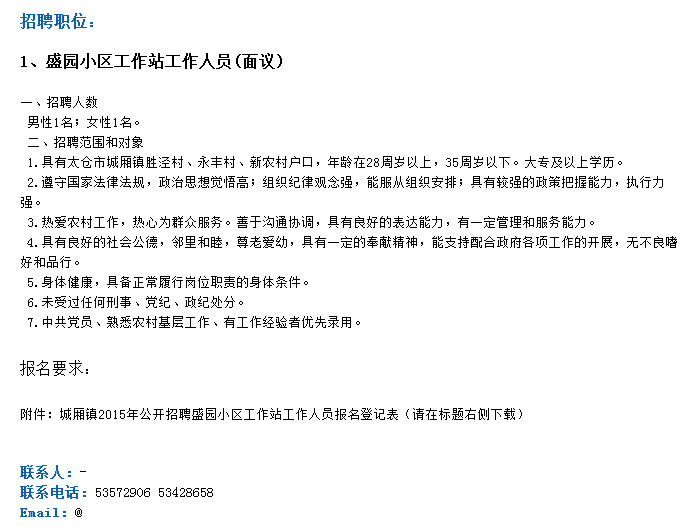 2015江蘇太倉市城廂鎮盛園小區工作站招聘公告【招2人】