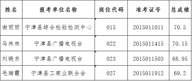 2015年寧津縣事業單位公開招聘資格復核、考察遞補人員名單
