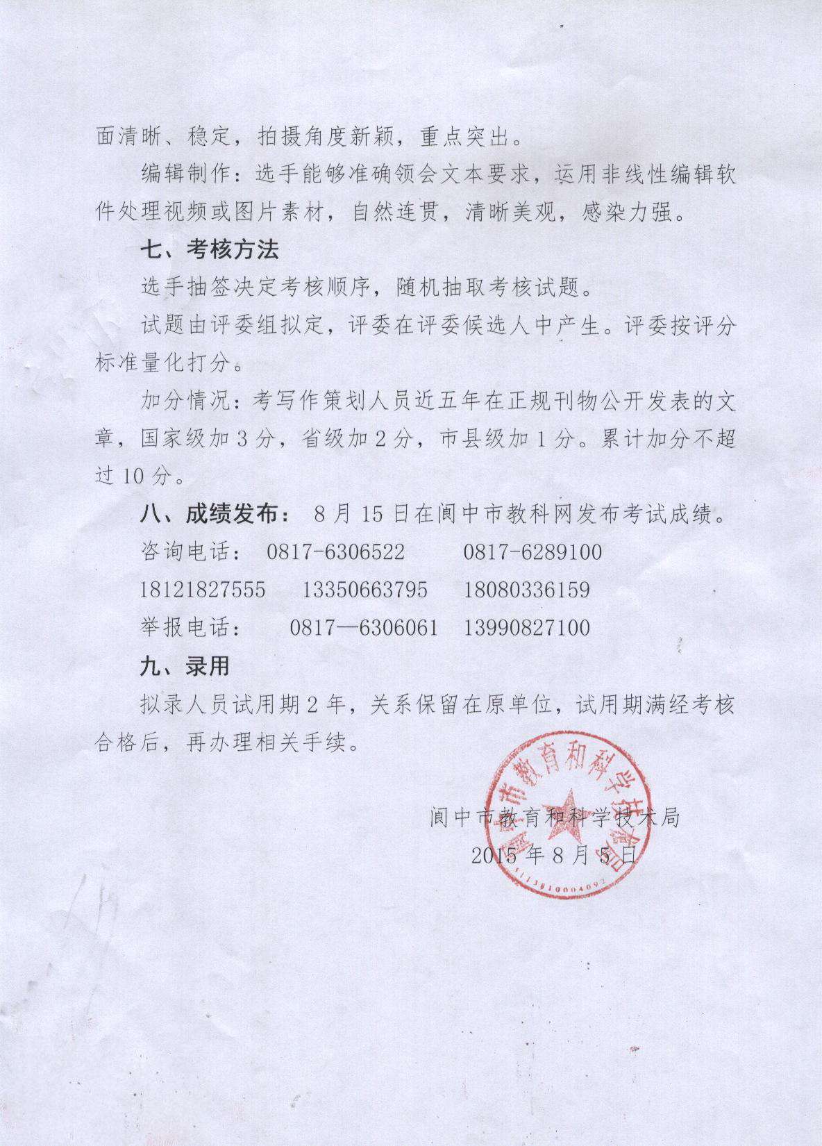 2015四川閬中市教育和科學技術局本系統內招聘教育電視臺人員公告【招4人】
