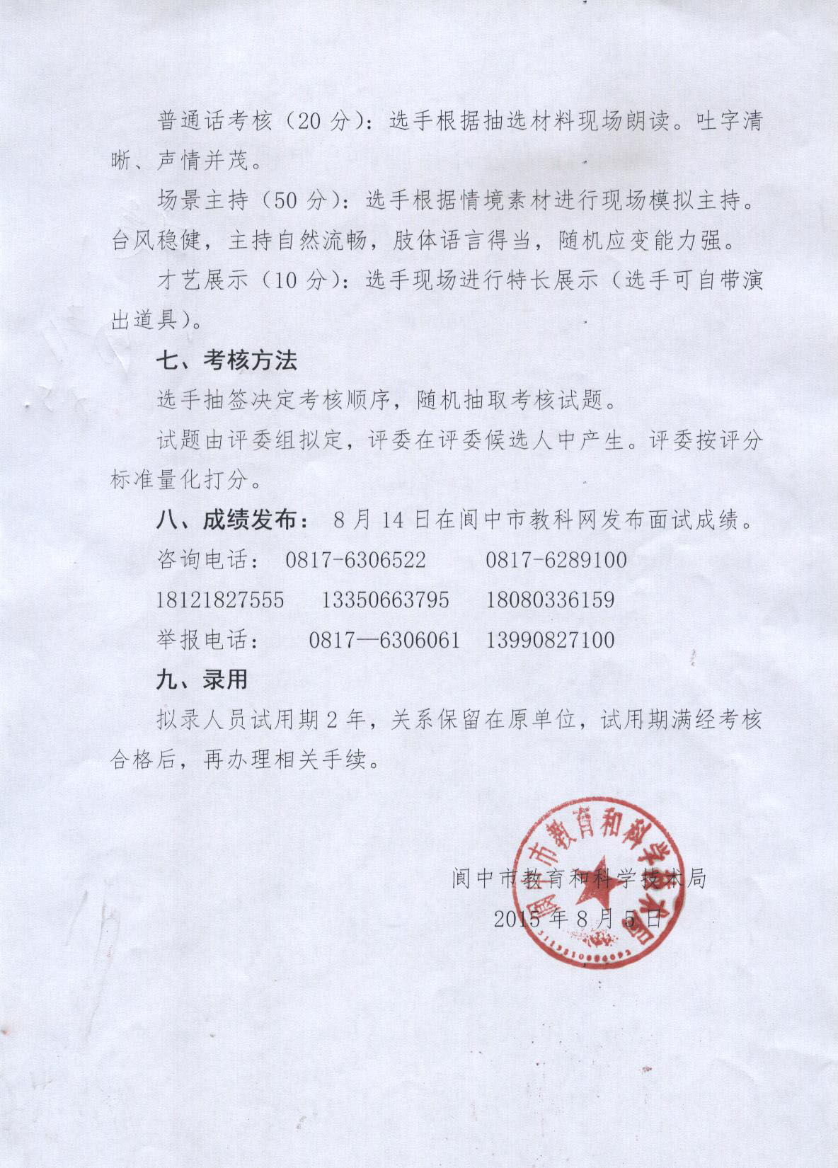 2015四川閬中市教育和科學技術局本系統內招聘教育電視臺主持人2人公告