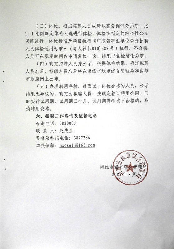 2015廣東南雄市城市綜合管理局招聘城市綜合管理特勤隊隊員30人公告