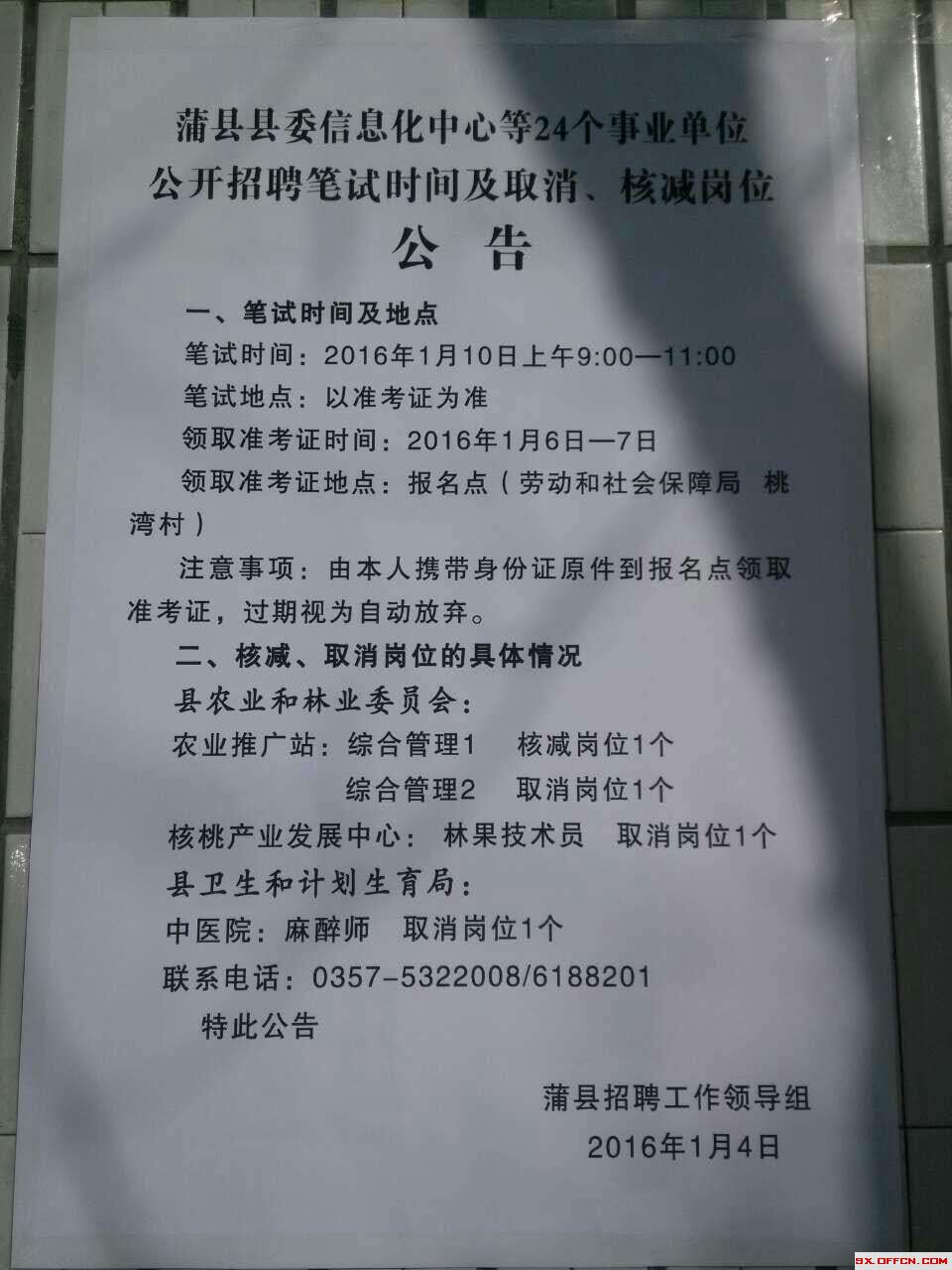 2015山西臨汾蒲縣24個事業(yè)單位招聘筆試時間及取消、核減崗位公告