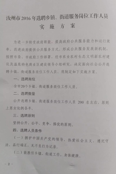2016河南平頂山汝州市選聘鄉鎮、街道服務崗位人員200名公告