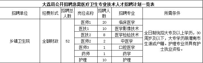 2016陜西渭南市大荔縣急需醫(yī)療衛(wèi)生專業(yè)技術(shù)人才招聘公告【招52人】