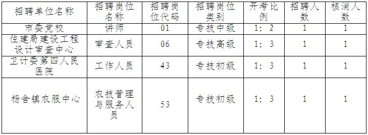 2016年張家港市部分事業單位公開招聘工作人員報名工作已經結束,根據簡章規定,對下列因無人報名或未達到開考比例的招聘崗位進行核消,具體職位公告如下: