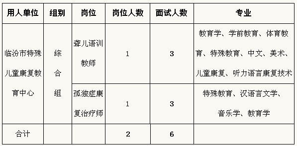 原標題:臨汾市市特殊兒童康復教育中心招聘工作人員面試實施方案