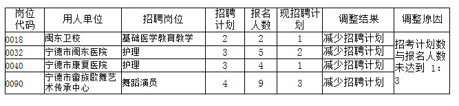 2016上半年福建寧德市直事業單位招聘部分崗位計劃調整或不予開考公告