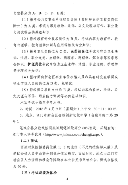 2016上半年廣東江門市新會區招聘機關雇員、事業單位職員公告【222人】