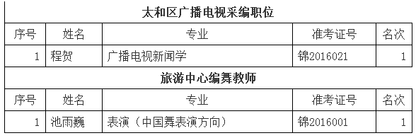 原標題:2016年太和區事業單位公開招聘擬錄人員公告