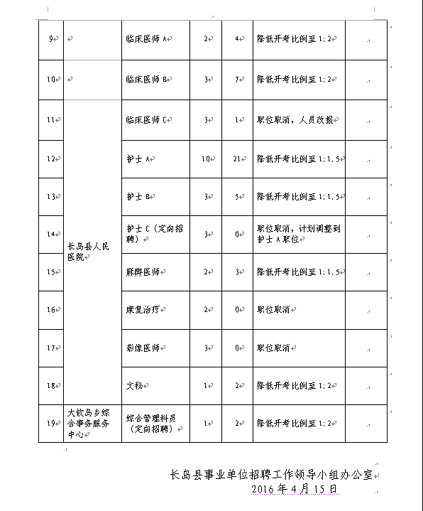 2016山東長島縣事業單位招聘職位計劃取消調整公告