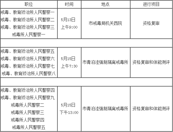原標題:天津市戒毒管理局關于2016年公開招考公務員資格復審和體能測評的通告