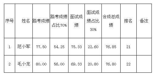 根據(jù)峽江縣機(jī)關(guān)事務(wù)管理局公務(wù)用車服務(wù)中心招聘合同制司勤人員工作方案有關(guān)要求,現(xiàn)因兩位考生政審不合格,不予錄用,出現(xiàn)的空缺崗位,按合成成績從高到低依次予以遞補,遞補人員名單公告如下:
