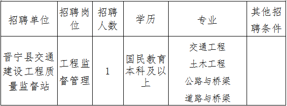2016云南晉寧縣交通建設工程質量監督站招聘公告【1人】
