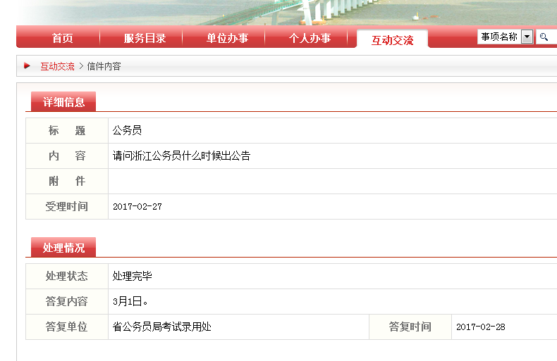 圖一:2017年浙江省公務員考試公告3月1日發布