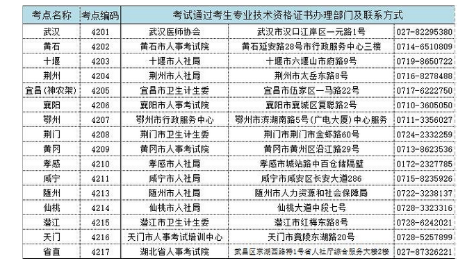 原標題:湖北省衛生專業技術資格、護士執業資格考試各考點辦證部門聯系方式表