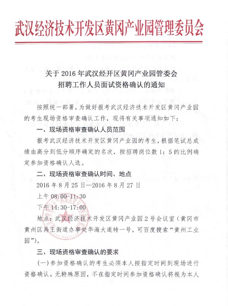 2016湖北武漢經(jīng)開區(qū)黃岡產(chǎn)業(yè)園管委會招聘面試資格確認通知