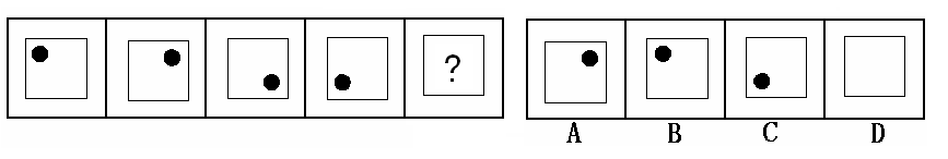 (答案:B。黑點在正方形中順時針移動。在第5個圖形中,應(yīng)該正好移動到左上角。)