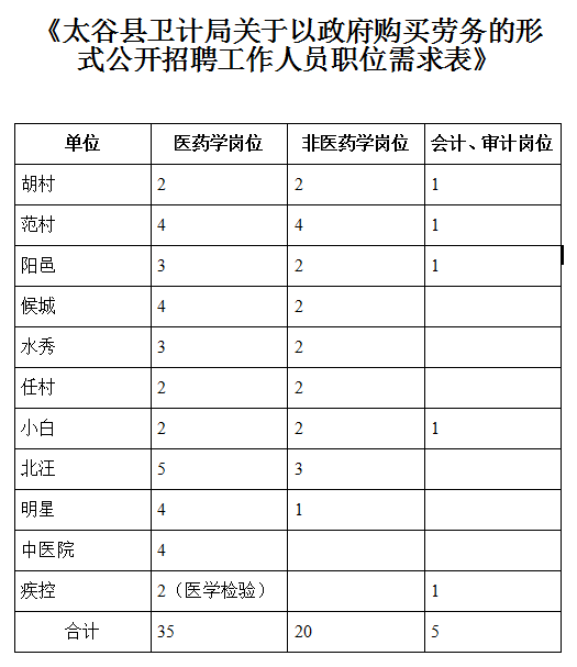 原標題:晉中太谷縣衛計局公開招聘60名人員方案