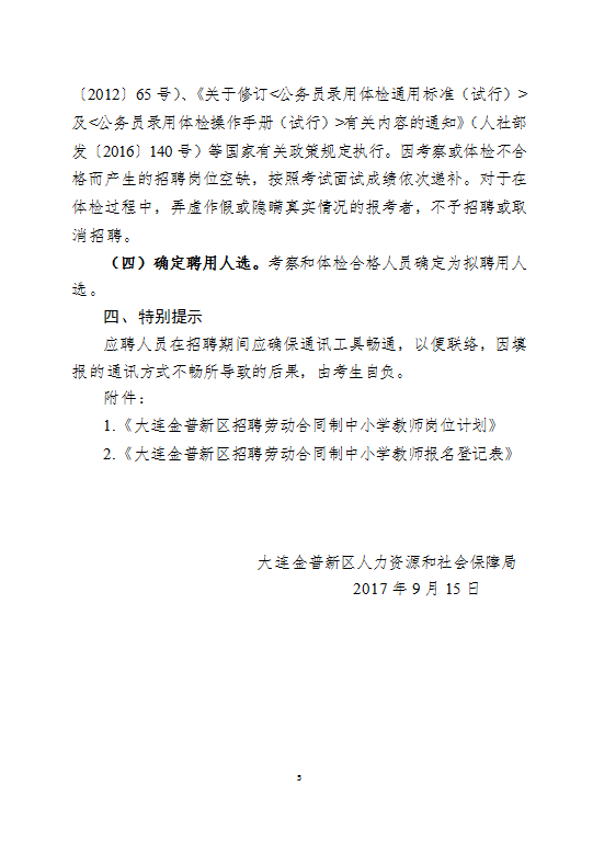 2017大連金普新區招聘勞動合同制中小學教師93人公告