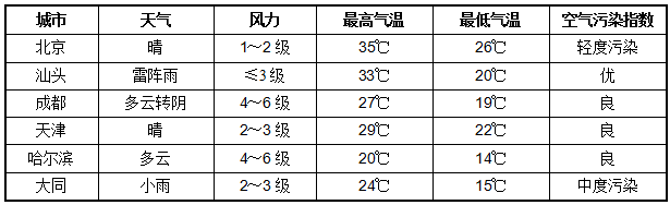 例2:下面是某日幾個城市的天氣預報