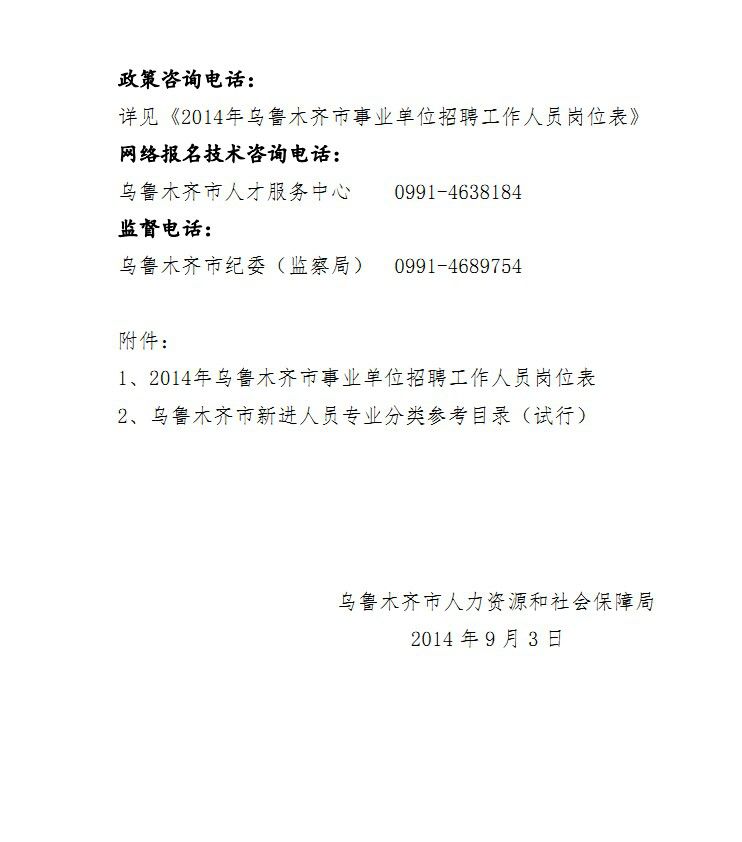 2014年新疆烏魯木齊市事業單位招聘公告【1282人】