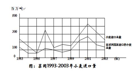 1.從1993年到1997年中,該國共從亞洲國家進(jìn)口多少百萬噸小麥?