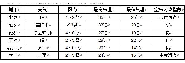 例2:下面是某日幾個(gè)城市的天氣預(yù)報(bào)