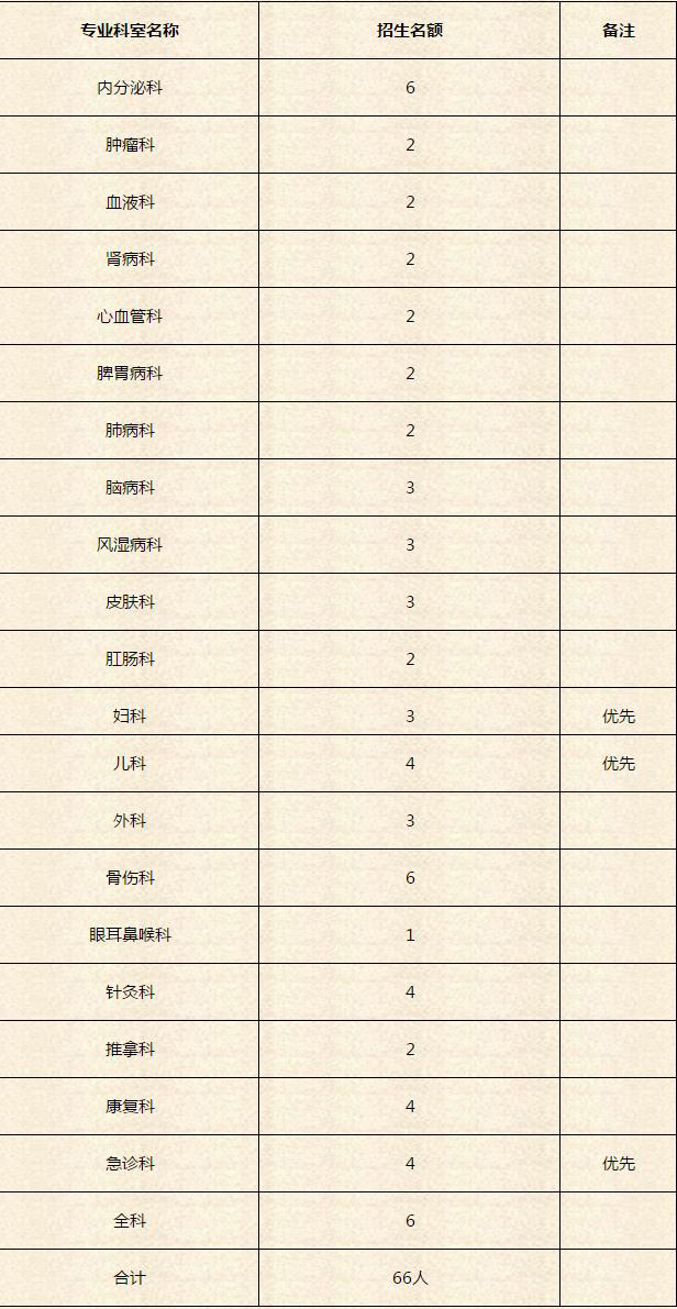 醫院21個專業科室將面向全國招收住院醫師規范化培訓住培對象,具體專業及招生名額具體見表1。